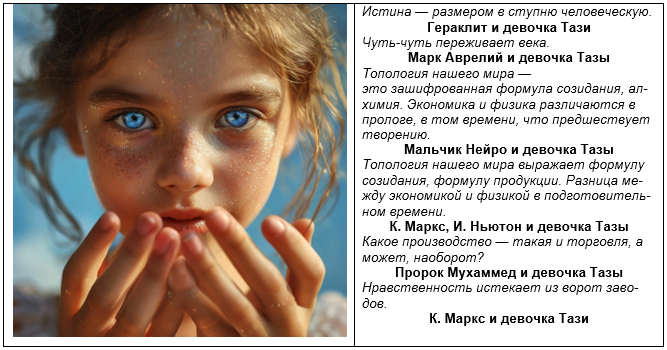 Труд человека и труд машин можно разделить на три вида: ручной труд, похож на копье Одиссея; модульный ручной труд на рыбацкую сеть апостола Павла; потоковый труд, подобен реке мертвых Стикс, лишенный производительной силы труда, поступков души человека. На протяжении двести лет было мнение воспринимать производство как процесс преобразования времени в продукцию: Q = Ф × S, это стало исходным для факторов производительности Маркса и для теории Тазы, только в формулу добавлен технический уровень труда и коэффициент плотности труда: