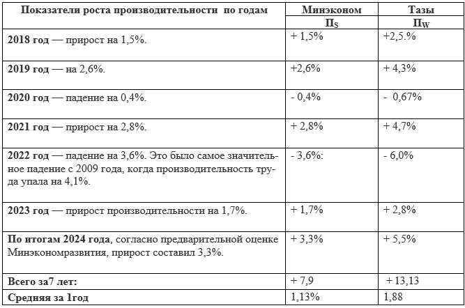 Данные Минэкономразвития о динамике роста сменной производительности труда (ПS) с 2018т. svpressa.ru. [6]