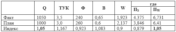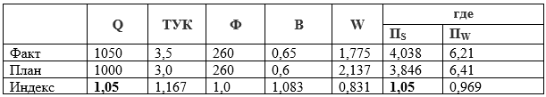 Пример 1. Индекс роста объема производства совпадает с индексом сменной