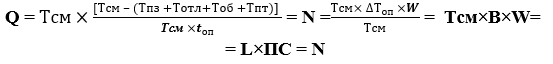 Q=ТУК×Тсм×В×W = ТУК×L×ПС.