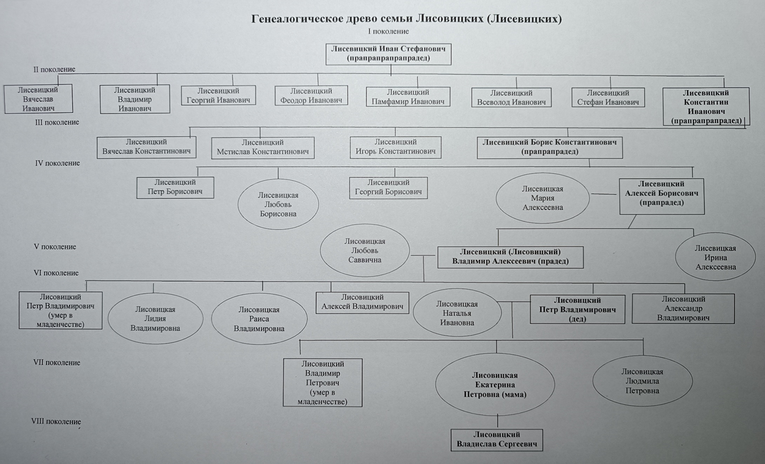 Рисунок 1. Генеалогическое древо семьи Лисовицких (Лисевицких)